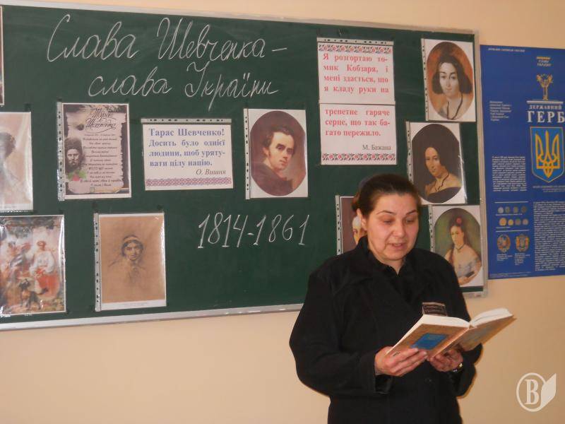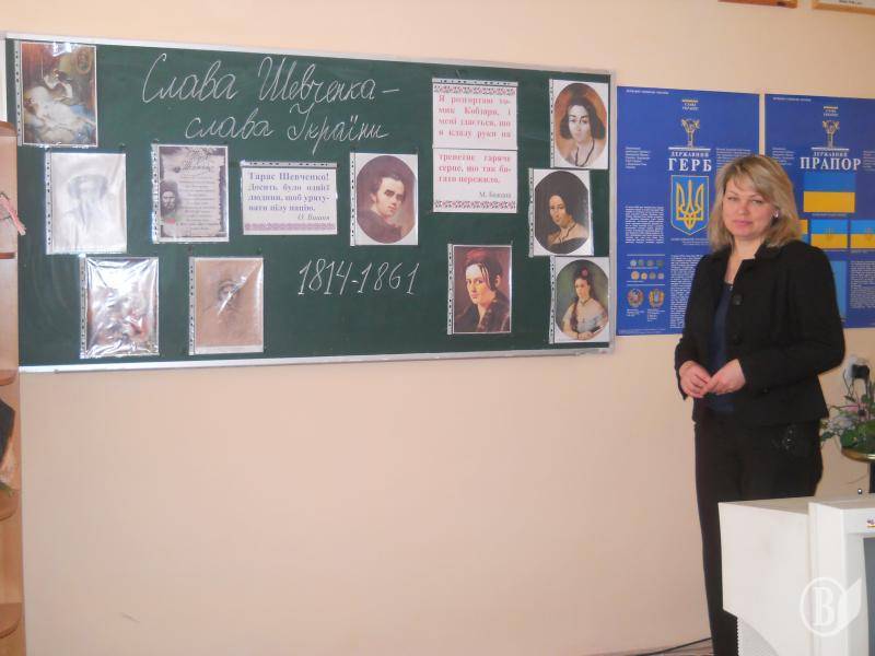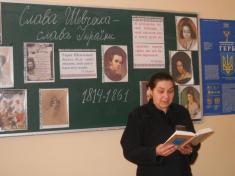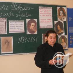 Читання напам'ять віршів Шевченка, зустріч із його героями: Катериною, Лілеєю, Наймичкою, виконання пісень на слова Т. Шевченка «Думи мої, думи мої...», «Реве та стогне Дніпр широкий», «Заповіт», інсценізація уривків з поем «Наймичка» та «Катерина» – все це очікувало дванадцяті класи на святі «Слава Шевченка – слава України».