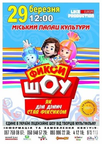 Компанія «Like Production Europe» представляє оригінальну дитячу виставу «Фіксі-ШОУ!» за мотивами анімаційного серіалу «Фіксіки» від творців мультфільму.
