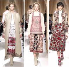 Итальянский бренд обратился к этническим элементам в костюме. В этот раз дизайнеры черпали вдохновение в традиционных вышивках и элементах одежды родом из Восточной Европы.