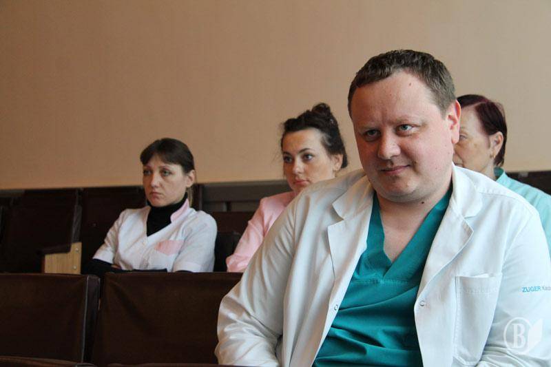 Про сучасні методи лікування гострого коронарного синдрому розповів завідувач інтервенційної кардіології Сергій Стратилат. Він , до речі, популярно пояснив, звідки беруться такі високі ціни при операціях на серці.