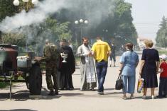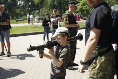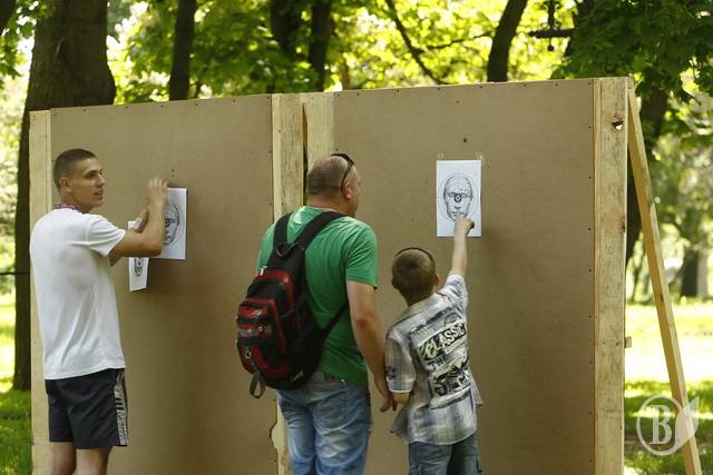 Дуже допомогли хлопці з ПЧС та "Соти". Виставка муляжів зброї пройшла на "ура". Тішить, що молоде покоління цікавиться зброєю і поводженням з нею. Не менш популярним був тир. Черга з бажаючих влучити Путіну між очей не розсмоктувалася до самісінького вечора. Жінок переважно цікавила тактична медицина. Майстер-клас по ній провели Олександр Максимець та Наталія Нос - члени "Білих беретів", які врятували на передовій не одне людське життя.