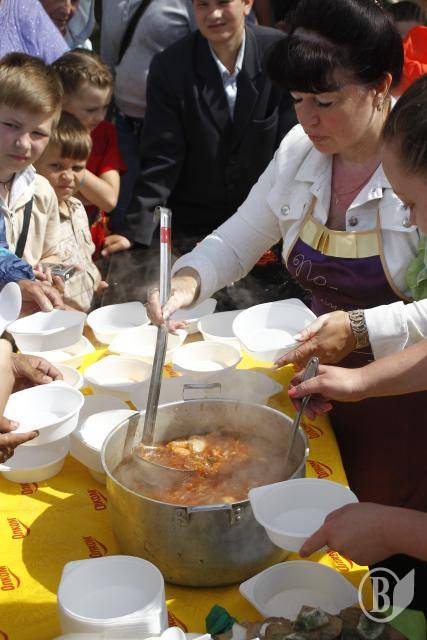 В Чернигове в центре города у набережной возле ЗАГСа впервые провели фестиваль борща. Организаторы – Геннадий Корбан и Украинское объединение патриотов обещали накормить 850 человек! Именно на такое количество порций было заготовлено продуктов.