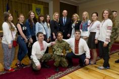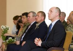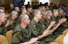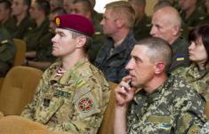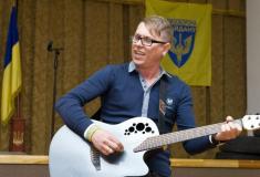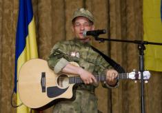 В штабі Нацгвардії презентували диск «Пісні нашої перемоги «На дальніх барикадах» Марія Бурмака, Василь Лютий, Рутенія, Шабля, боєць батальйону Національної гвардії імені генерала Кульчицького Володимир Пастушок (позивний Пісня).