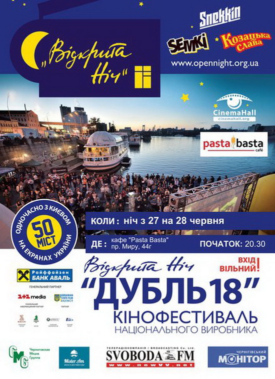 Оголошена програма та журі кінофестивалю “Відкрита ніч - дубль 18”, що відбудеться у ніч з 27 на 28 червня у місті Чернігів