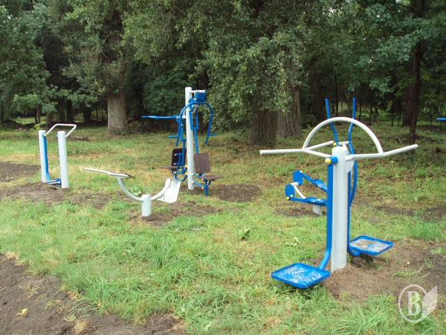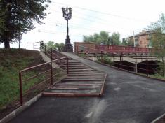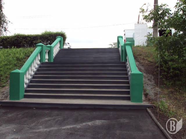 Здесь уже - отреставрированные лестницы, симпатичные лавочки, урны, а также детская площадка и площадка со спортивными тренажерами.
