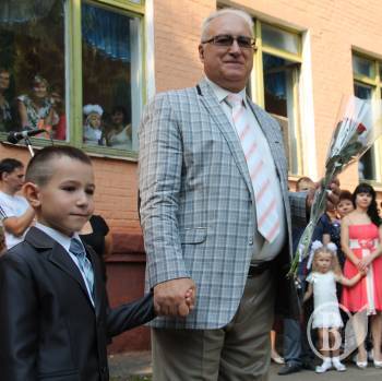 На снимке: директор школы № 20 Николай Конончук с тем же первоклассником