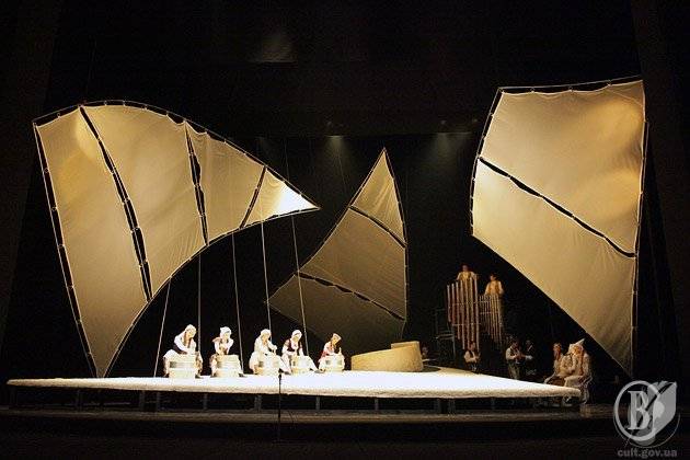 «Вій, вітерець!» - це історія, де кожний крок героїв – крок кохання. Кожний глядач у цій постановці з.д.м. України Вадима Сікорського побачить щось своє, рідне та знайоме. Адже рішення вистави виходить далеко за межі побутового реалізму і переносить нас у символічний світ образів та почуттів. Пісня «Вій, вітерець!» та усе музичне оформлення створювали атмосферу вільного лету.