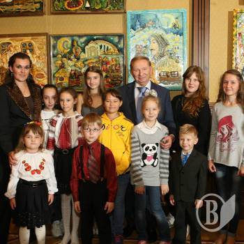 Учні школи мистецтв при НУКіМ ім. М. Заньковецької вразили Леоніда Даниловича не лише картинами й художніми образами. Юні таланти, які навчаються на театральному, музичному, вокальному й хореографічному відділеннях школи, підготували чудовий міні-концерт, продемонструвавши свої різнобічні обдарування. Карина Красновид, Вікторія Васильєва, Софія Кобзар – учасниці театру-студії «Містерія» – зачарували присутніх виконанням літературно-музичної композиції за творами Ліни Костенко.