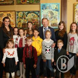 Учні школи мистецтв при НУКіМ ім. М. Заньковецької вразили Леоніда Даниловича не лише картинами й художніми образами. Юні таланти, які навчаються на театральному, музичному, вокальному й хореографічному відділеннях школи, підготували чудовий міні-концерт, продемонструвавши свої різнобічні обдарування. Карина Красновид, Вікторія Васильєва, Софія Кобзар – учасниці театру-студії «Містерія» – зачарували присутніх виконанням літературно-музичної композиції за творами Ліни Костенко.