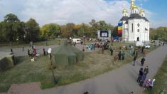 Те черниговцы и гости нашего города, которые в то время находились на площади около казацкого храма, могут разглядеть себя и реально увидеть действо глазами птицы.