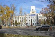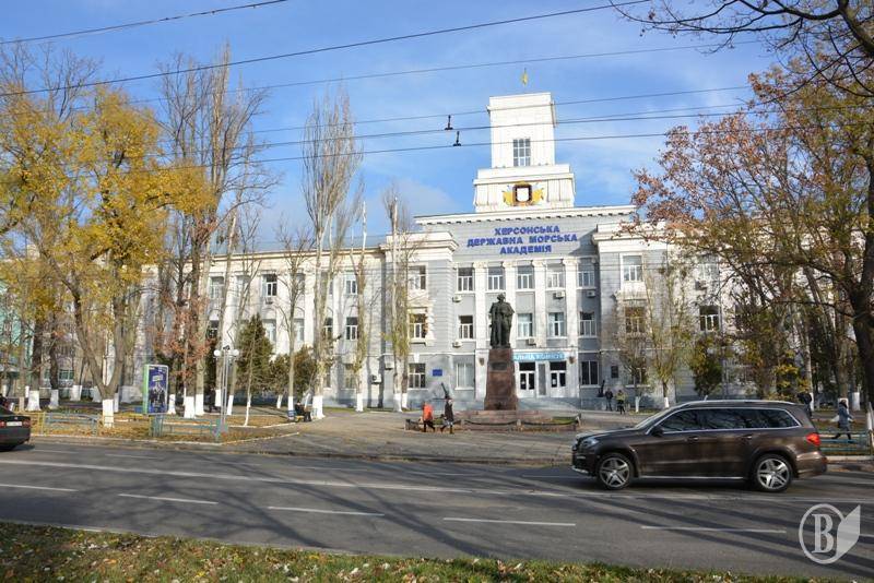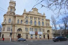 Херсонцы любят свой драматичный театр имени Николая Кулиша, считают его красивым, и только очень любознательные знают, что он построен по такому же проекту, как и наш – черниговский. Подхожу, фотографирую: похож, только барельеф на фронтоне отсутствует. И есть большая неприятность: уже несколько лет его не видно из пешеходной улицы. Потому что местный богатый буратино построил напротив него огромное стеклянно-бетонное торговое сооружение. Однако оно треснула, помещение почти не используется, но туристам театр сразу и не найти.