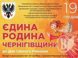 В День Святого Миколая в рамках акції "Єдина родина Чернігівщини" у Чернігові відбудуться заходи із вшанування пам’яті загиблих учасників Революції Гідності, антитерористичної операції на сході України та підтримки їх родин.