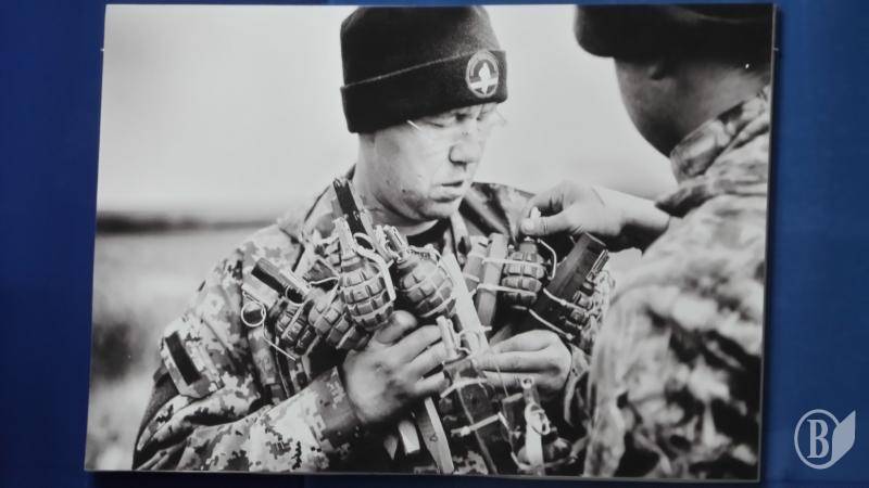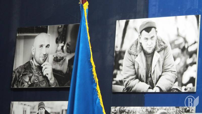 На выставке представлены 46 фотографий, на которой изображены бойцы Украинской Армии и добровольческих батальонов. Двух героев из представленного фотоочерка уже нет в живых.