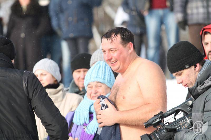 В первом месте купались те, кто верит, что вся вода сегодня целебна.