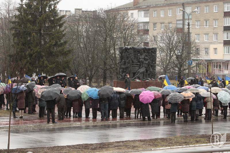 Учасники зібрання схилили голови й у шані за загиблими мирними жителями та земляками-героями, що полягли на сході України за час проведення антитерористичної операції.