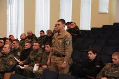 Під час невимушеного спілкування з керівництвом ГУНП бійці отримали відповіді на питання стосовно матеріального забезпечення, атестації, а також обговорили формат участі «чернігівців» у службовій підготовці поліцейських. Зокрема йшлося про навчання правоохоронців навичкам тактичної медицини, адже бійці пройшли реальні бої з сепаратистами і мають чим поділитися з поліцейськими в плані професійної підготовки.