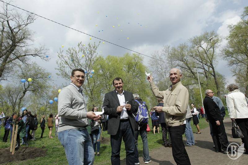 Взяли участь у висадженні представники релігійних та громадських чорнобильських організацій, а також голова ОДА В. Куліч і міський голова В. Атрошенко із заступником Ольгою Хоніч.