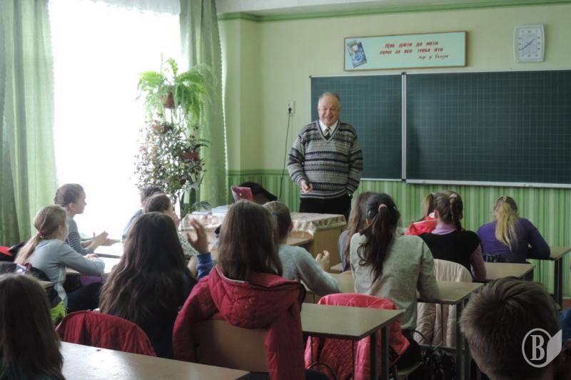 Школьники специализированной школы 1-3 степеней №2 с углубленным изучением иностранных языков встретились 21 апреля с участником ликвидации аварии на ЧАЭС – ветераном пожарной охраны, полковником в отставке В. П. Добрицей.