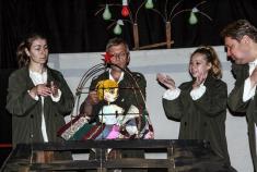 Далі я домовлявся з людьми, пояснював, що я хочу бачити. Для них це було щось дивне - сюжет ніби є, але ж на все накладається моє театральне бачення. Тому я їм щось пропонував, а потім намагався з'ясувати, чи їм усе зрозуміло, із тієї системи моїх знаків, що я їм пропоную, і ми десь сперечалися, десь домовлялися, десь вони щось додавали, тому що вони - лялькарі, вони краще знають свою специфіку. Це була добра співпраця. Це не був тотальний диктаторський режим. Ми абсолютно демократично спілкувалися стосовно нашої роботи. Це було дуже класно...