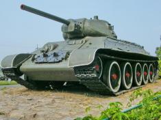Танк Т-34-85, на відміну від ранньої версії, має більш потужну гармату калібром 85мм і значно розширену башту