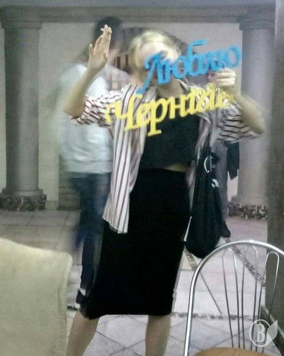 На одній – декоративна конструкція, де був напис «Люблю Чернігів». На іншій – цей напис в руках дівчини у якомусь явно небідному приміщенні.