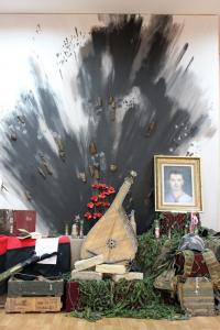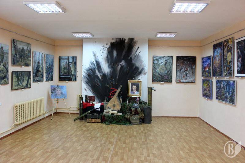 Художні образи більш виражено відчуваються поруч з артефактами – пробита осколком каска, військова амуніція та фрагменти озброєння, бандура та гільзи, прикрашені дитячими малюнками.