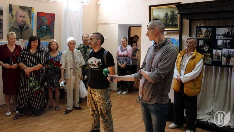 «Полотна, що демонструються тут – це не просто частина мого життя, це кров, біль і страждання – зазначив Тарас Носар. Метою виїзду художників на передову була ідея вшанування загиблих бійців з групи “Білорусь”. Митець переповів присутнім про враження від побаченого на війні. Свої емоції і почуття художник передав у полотнах із циклу “Українсько-російська війна 2014 – ? р.»
