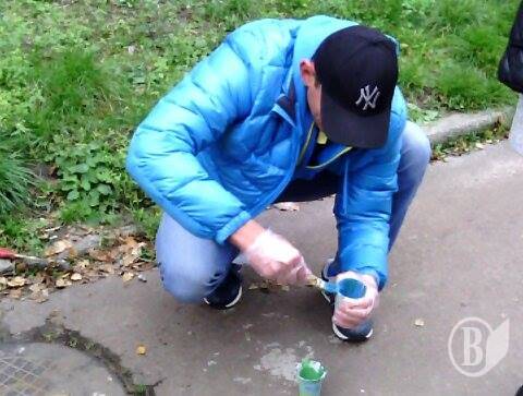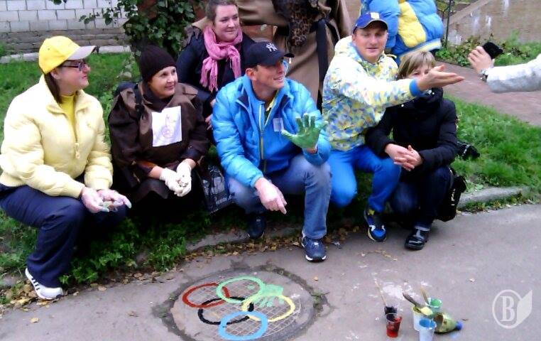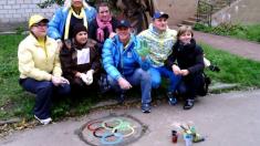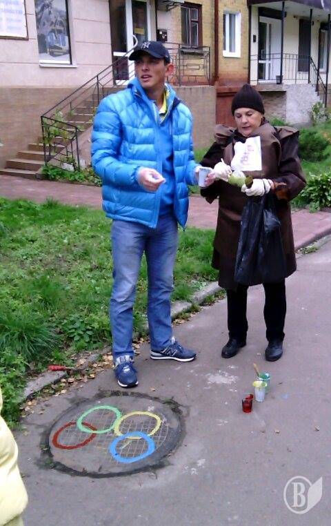 Двукратный олимпийским чемпион Юрий Чебан принял участие в акции из разрисовывания люков в Чернигове.