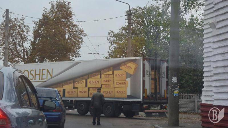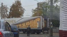 Фуру, розмальовану коробками Roshen, привезли на територію Троїцького собору в Чернігові.