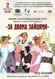 В Чернигове в среду, 2 ноября, в городском дворце культуры (по ул. Мазепы, 23) состоится представление Рижского украинского народного театра «За двумя зайцами».