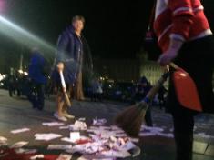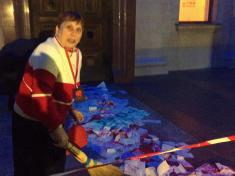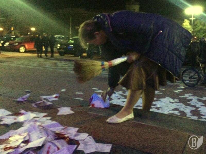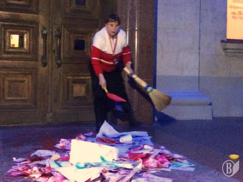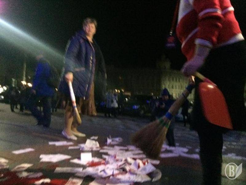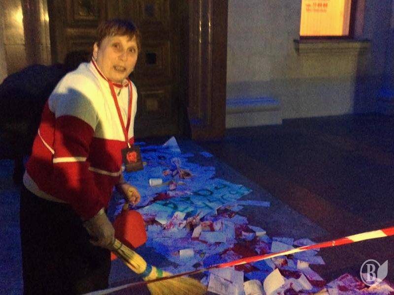 После (или еще во время) концерта Светланы Лободы вечером 1 ноября в помещении черниговского облмуздрамтеатра перед входом пришлось убирать сувенирные рубли, гильзы и «кровь».