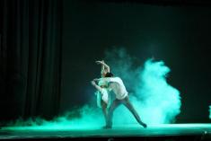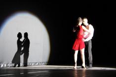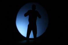Впоследствии тень выходит на свет, и юноша в светлых штанах и рубашке удивляет акробатическими трюками. Сквозь одежду наблюдается напряженность мышц. Напряженность мышц усиливается напряженностью музыки.