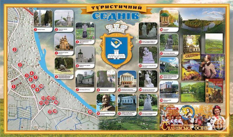 Репродукции картин Тараса Шевченко, Льва Жемчужникова, Андрея Лизогуба, Льва Логарио, переносят нас к местечку ХІХ века. Фотографии начала и середины ХХ века знакомят нас из седневцами, известными исследователями – краеведом Данилом Киселем и искусствоведом Стефаном Таранушенком, тогдашней архитектурой церквей и местными пейзажами.