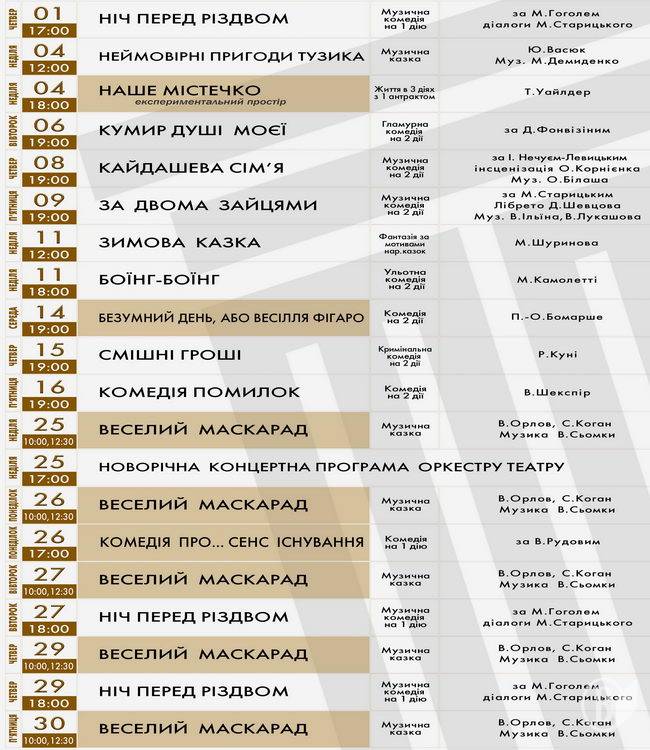 Репертуар черниговского драмтеатра им. Шевченко на декабрь-2016
