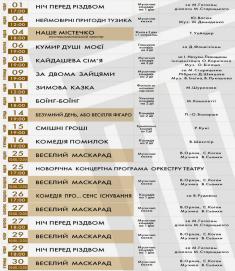 Наводим декабрьский репертуар 2016 года (91-й театральный сезон) Черниговского областного украинского академического музыкально-драматического театра им. Т. Г. Шевченко.