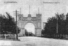 Ну і найвідоміша – на Шосейній, біля Валу. Коли вона там з'явилася точно сказати складно, проте споруда була й близько не такою капітальною, як може здатися: «Дерев'яна брудно-біла полуплена тріумфальна арка» – так її описував Г. О. Лазаревський.