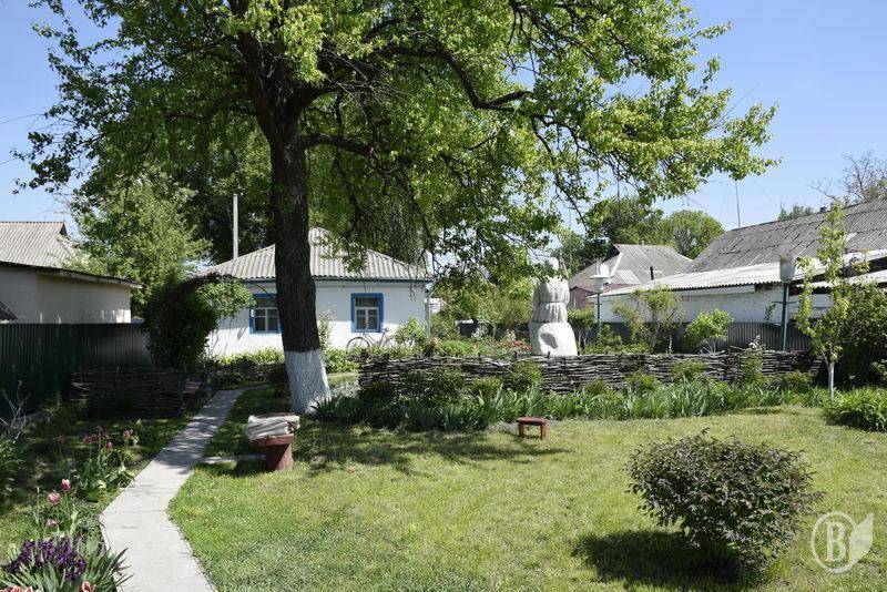 У садку ростуть дерева-сучасники художниці, біля хвіртки – понад сторічний берест (в’яз), навколо хати – плетений тин і безліч квітів. Тут же стоїть мармурова скульптура Катерини Білокур у повний зріст авторства її племінника Івана Білокура, якого вона вчила малювати.