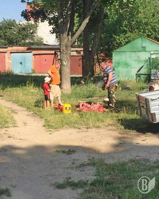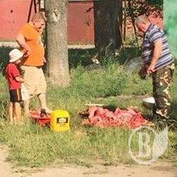 В одному з дворів у центрі Чернігова, біля дитячого майданчика, закололи свиню.