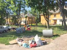 Поряд з місцем, де розташувались місцеві «м’ясники», знаходяться також і контейнери для сміття.