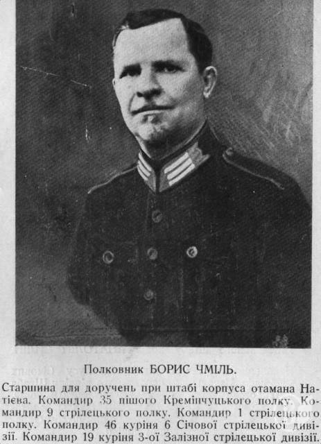Отож, згадаймо. Чміль Борис Федорович – український військовий діяч, полковник Дієвої Армії Української Народної Республіки.