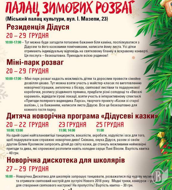 4.12.2017 Репертуар міського палацу культури Чернігова на грудень