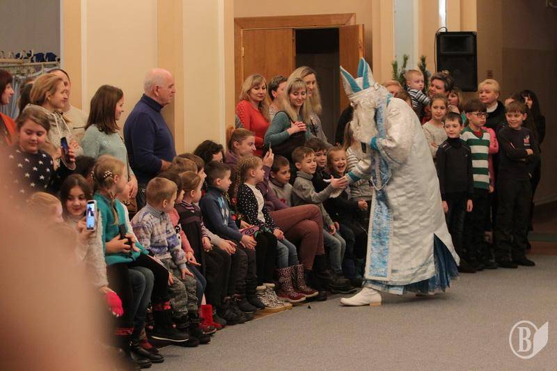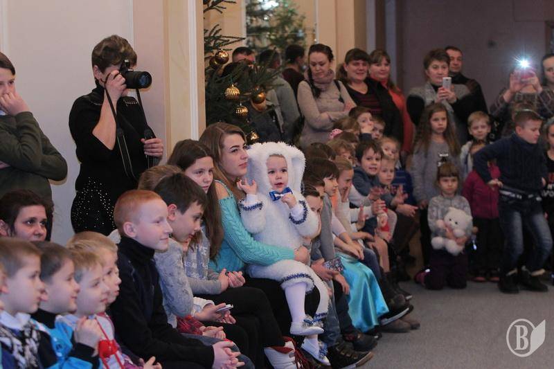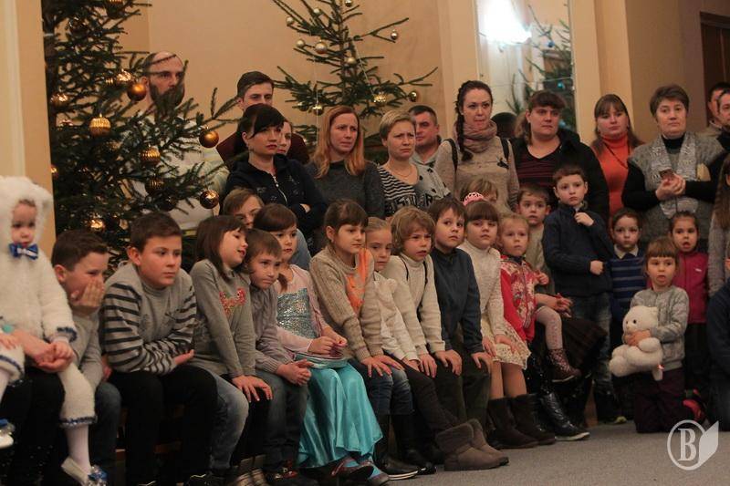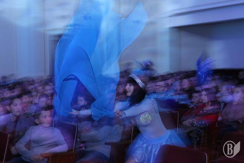 Маленьких гостей зустрічають вже у фойє філармонійного центру, де серед прикрашених до свята ялинок відбувається міні-вистава за участі улюблених казкових героїв.