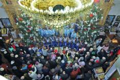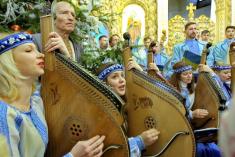 У теплій щирій атмосфері, що панує у цьому козацькому кафедральному соборі, біля відтвореного прекрасного іконостасу особливо натхненно виконували професійні співаки традиційні українські колядки у супроводі універсального національного інструмента – бандури.
