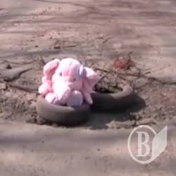 Післязимовий флешмоб на дорогах Прилук – м’які іграшки у ямах та вибоїнах.