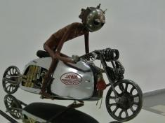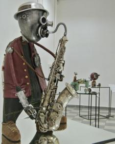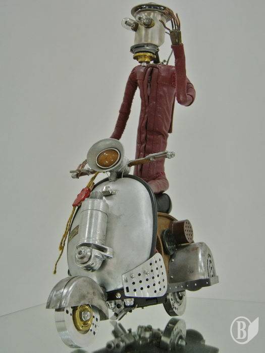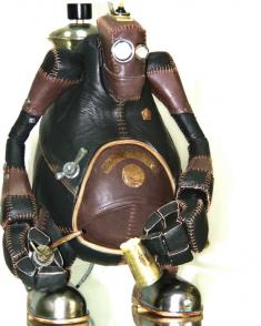 Зібрані вони, з одного боку, переважно з «викидних» деталей механізмів – від різного транспорту й механізмів, місцями і частин комп’ютерниих комплектуючих, а з іншого боку – виконані зі шкіри та мають іноді й коштовні елементи.