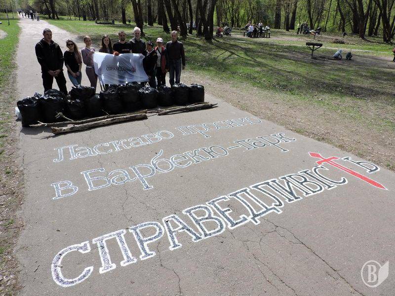 Чернігівська команда руху «Справедливість» зі своїми партійцями та прихильниками провела прибирання барбекю-парку на шляху від центрального парку до пляжу «Золотий берег» у Чернігові 21 квітня.