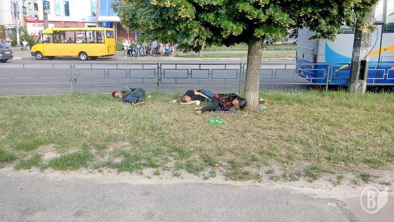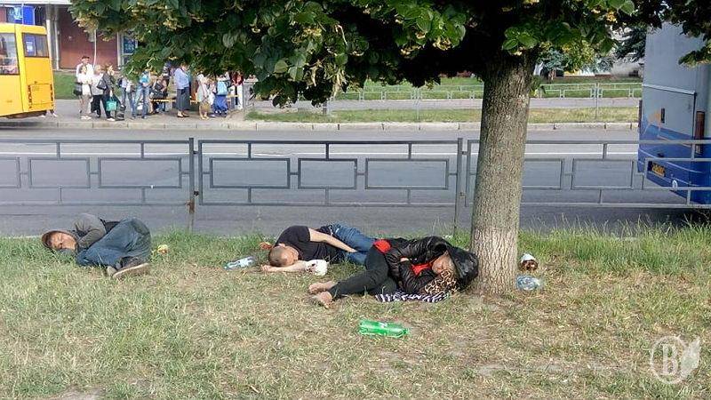 Антисоціальна група відпочиває на газоні в самісінькому центрі Чернігова.