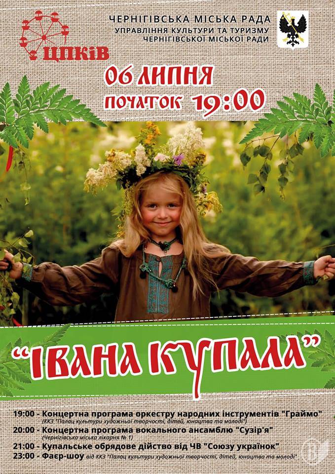 Центральний парк культури і відпочинку (ЦПКіВ) Чернігова анонсує програму до народного свята Івана Купала.