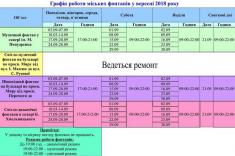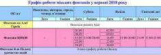 1.08.2018 Графік роботи фонтанів у Чернігові на серпень