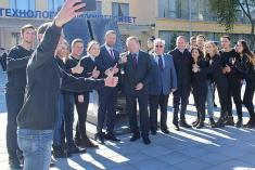Гість вподобав студентську площу, що перед навчальним закладом. Під час візиту Президента супроводжували Міський голова Владислав Атрошенко, заступник голови обласної ради Валентин Мельничук, ректор цього університету Сергій Шкарлет.